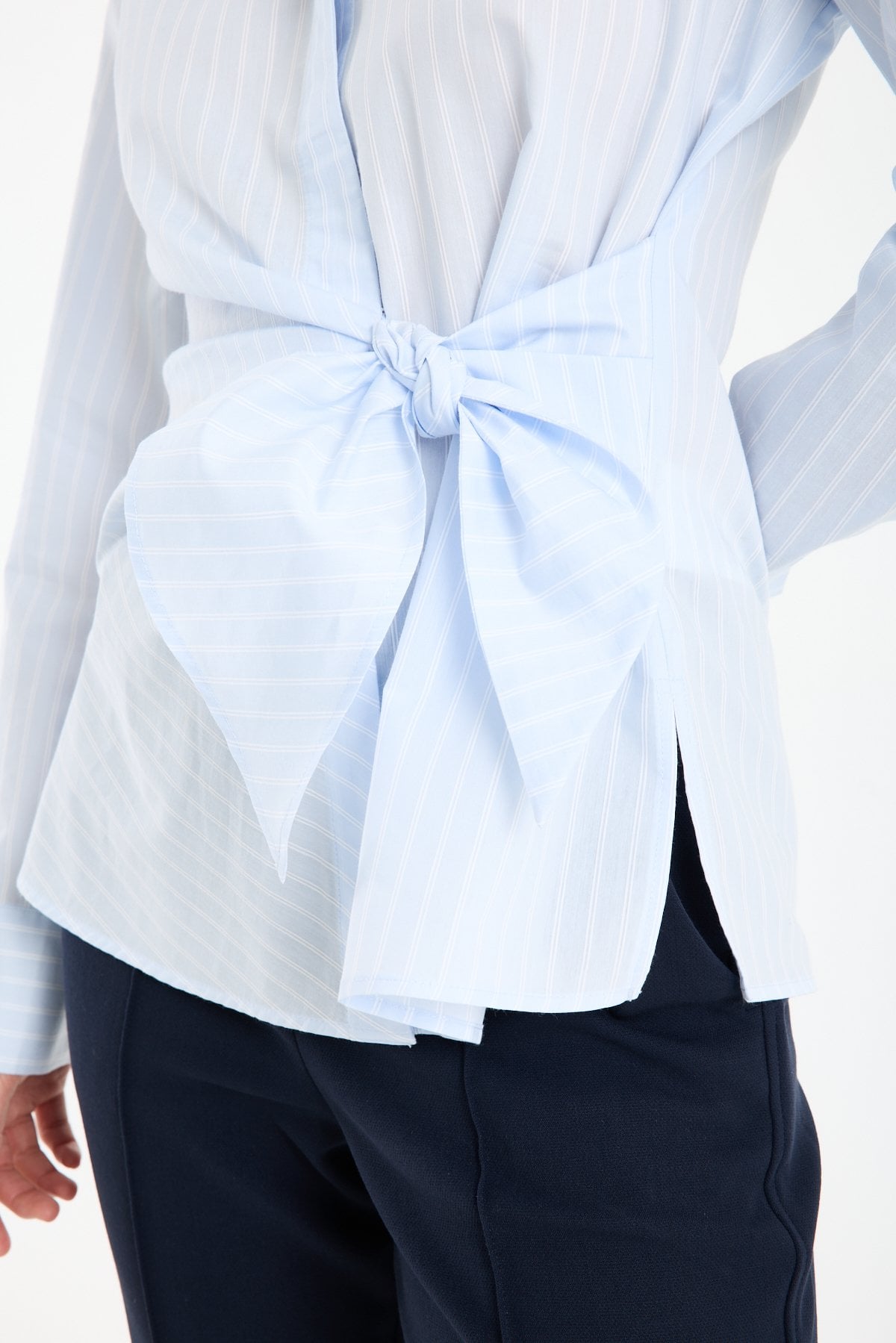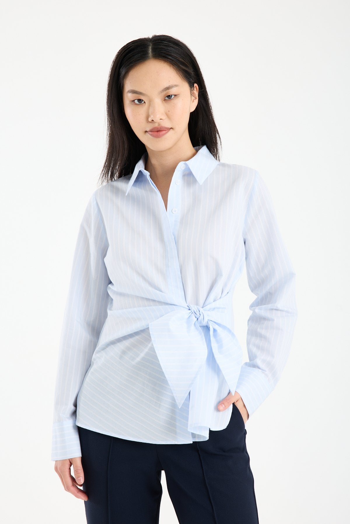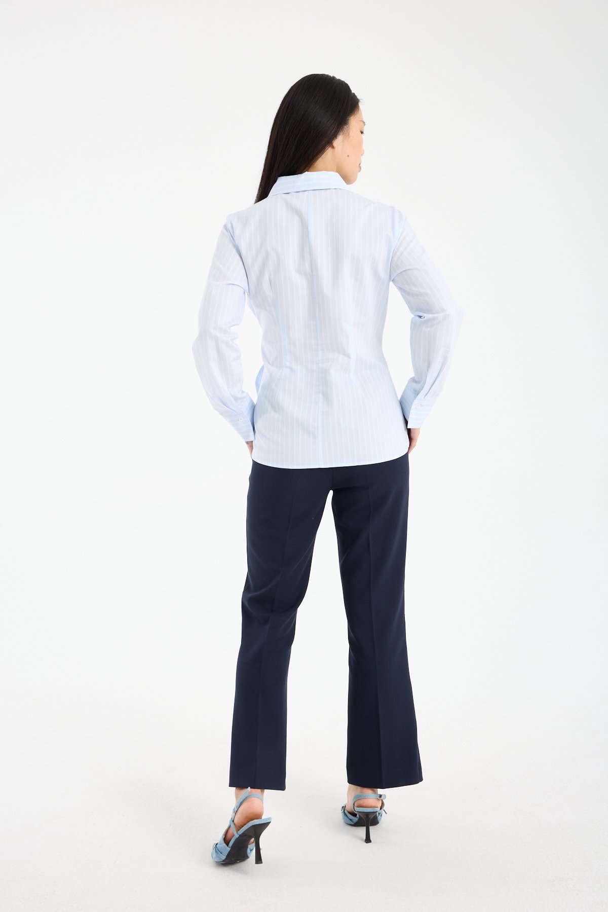 Kadın Bağlama Detaylı Çizgili Gömlek MAVİ - 42
