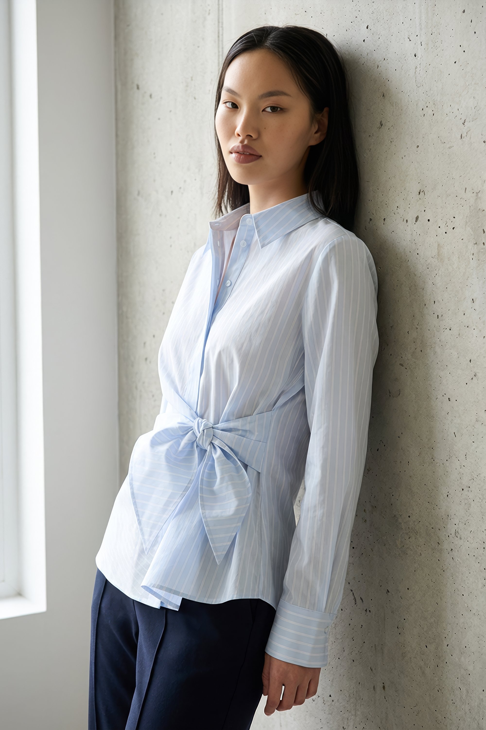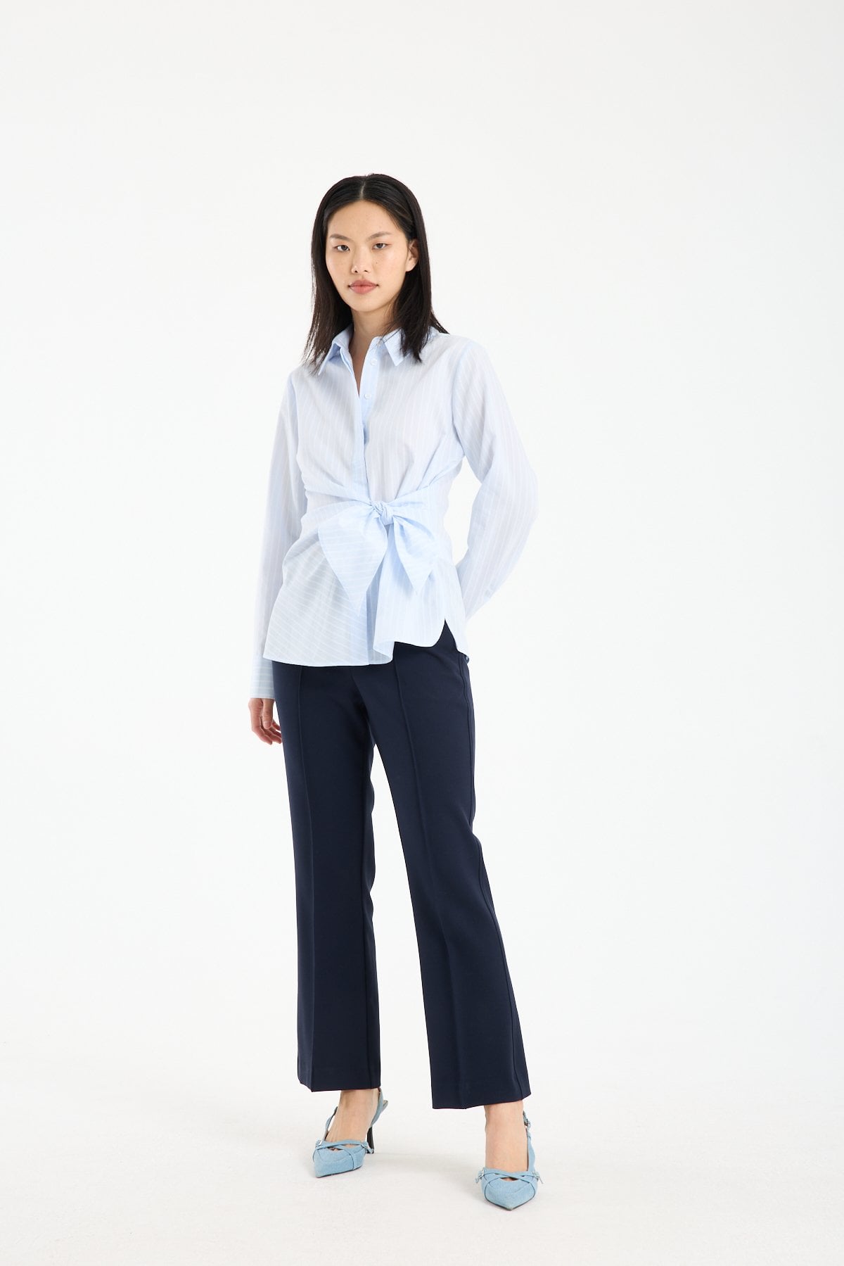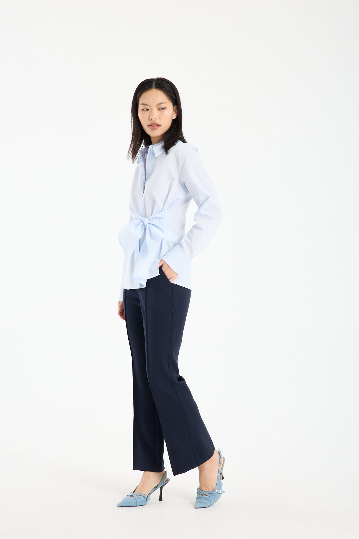 Kadın Bağlama Detaylı Çizgili Gömlek MAVİ - 42