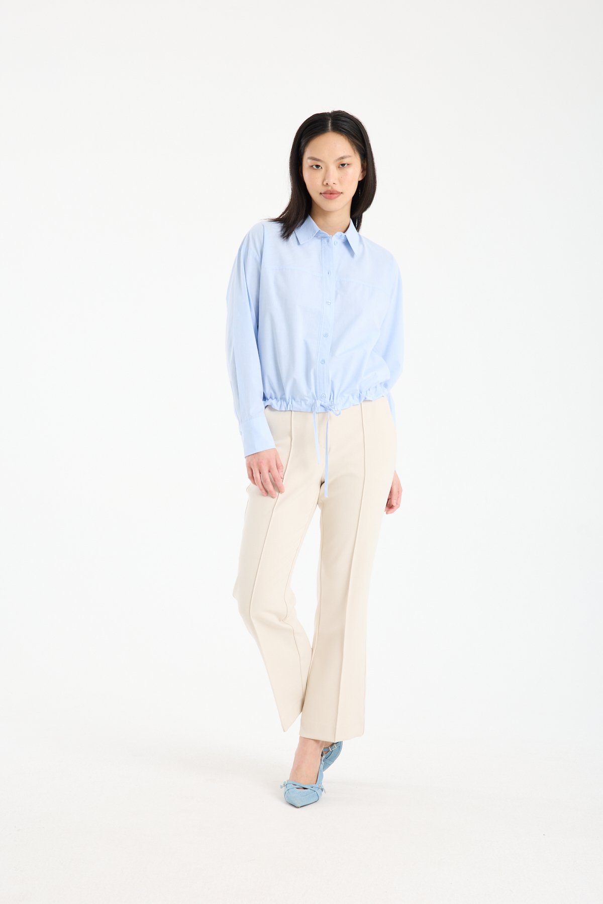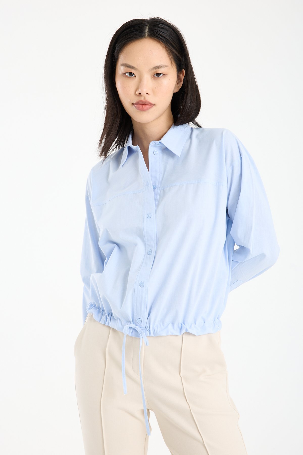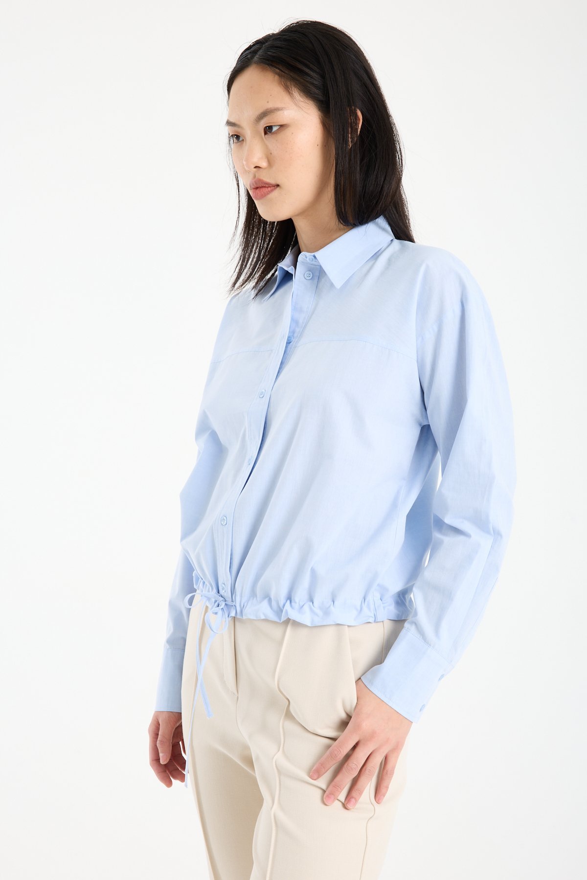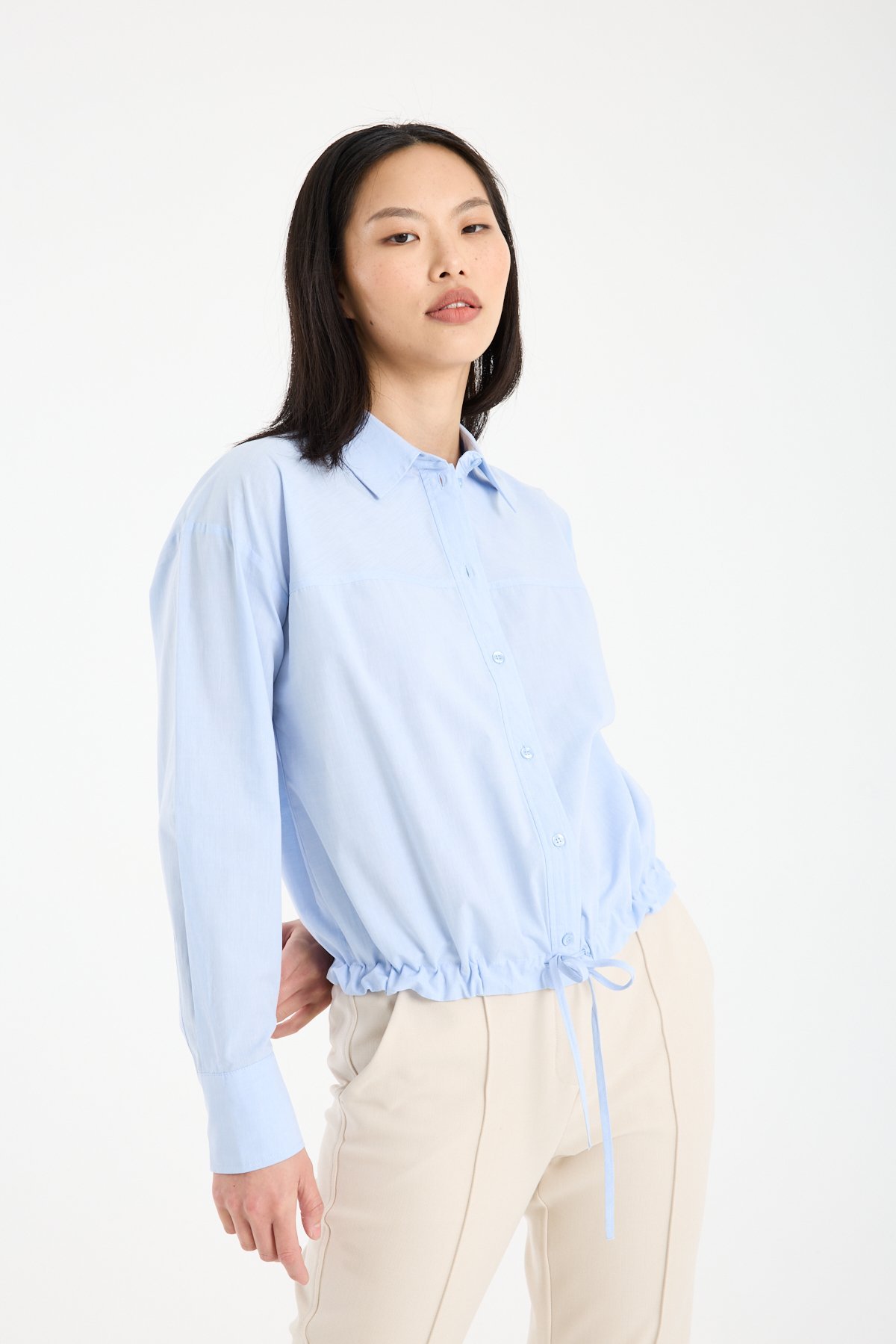 Kadın Belden Büzgülü Uzun Kollu Gömlek