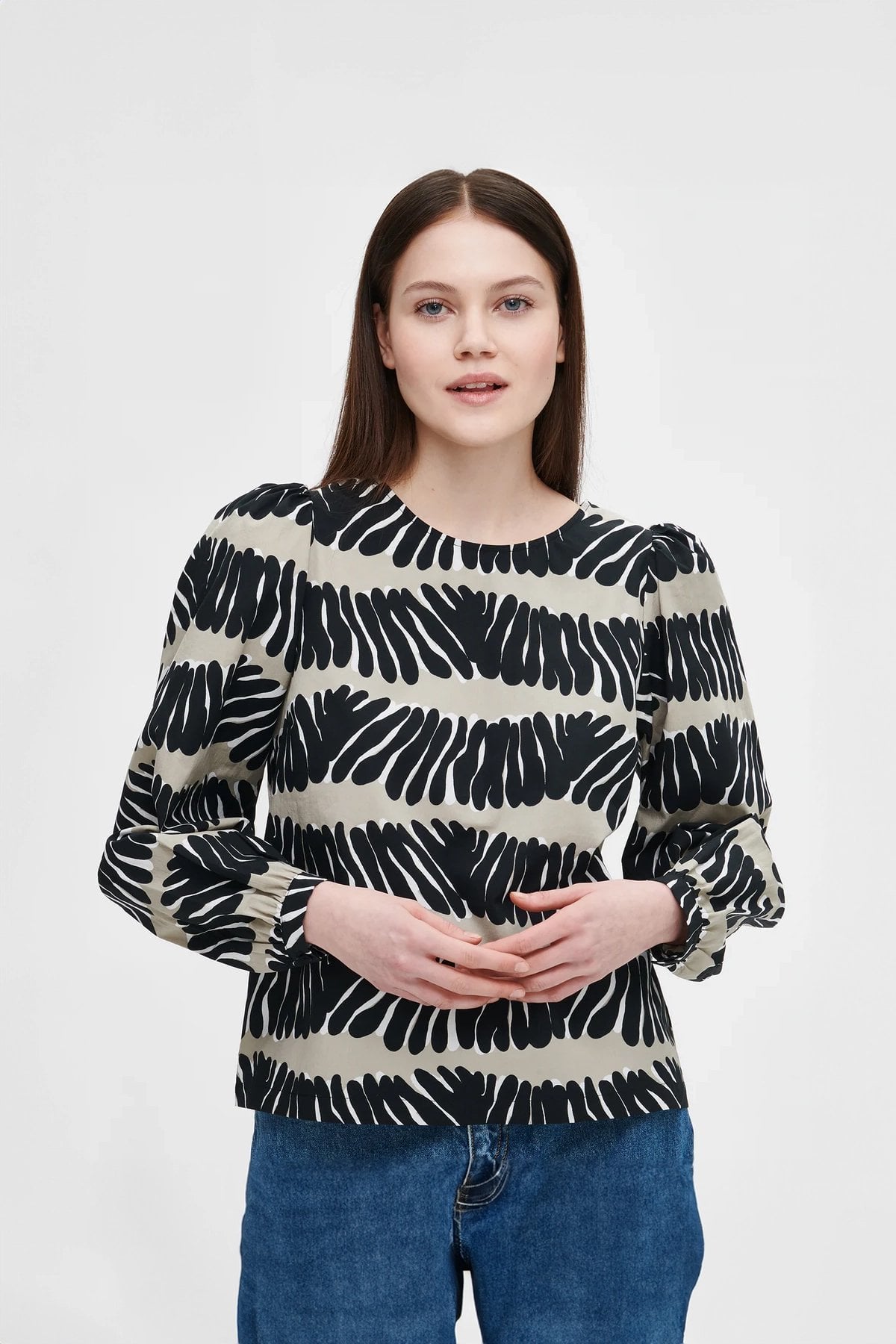 Kadın Desenli Uzun Kollu Balon Kol Bluz BEJ - 46