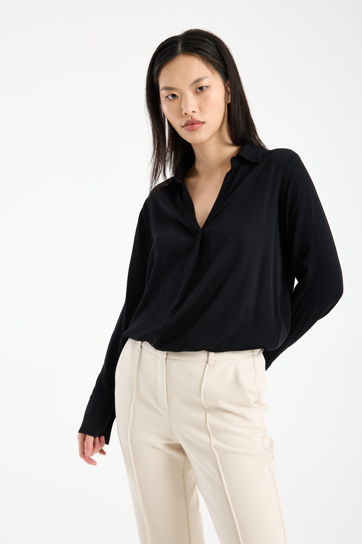 Akışkan dokusu ve sade şıklığıyla, güçlü ama abartısız bir stil isteyenler için ideal bir parça.