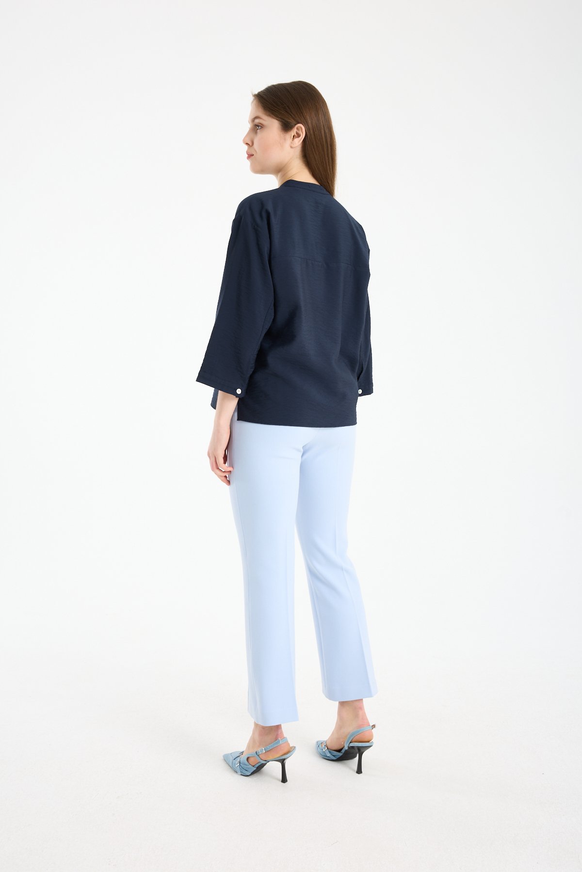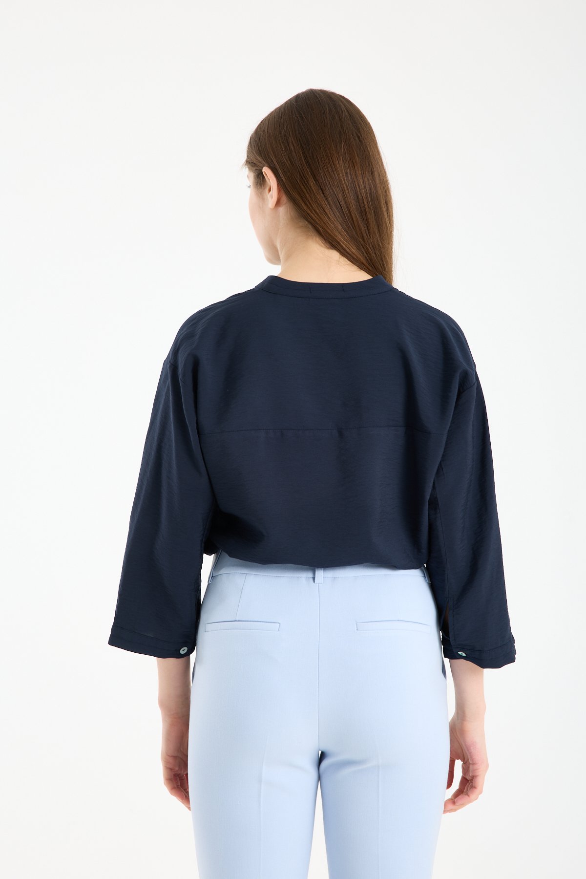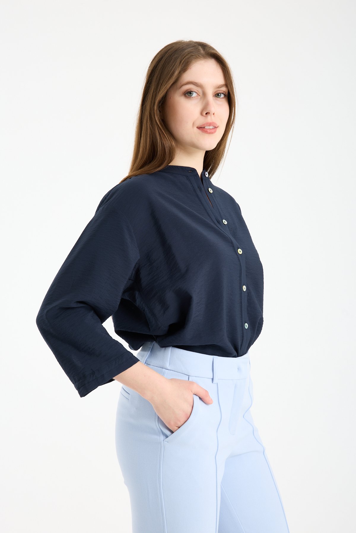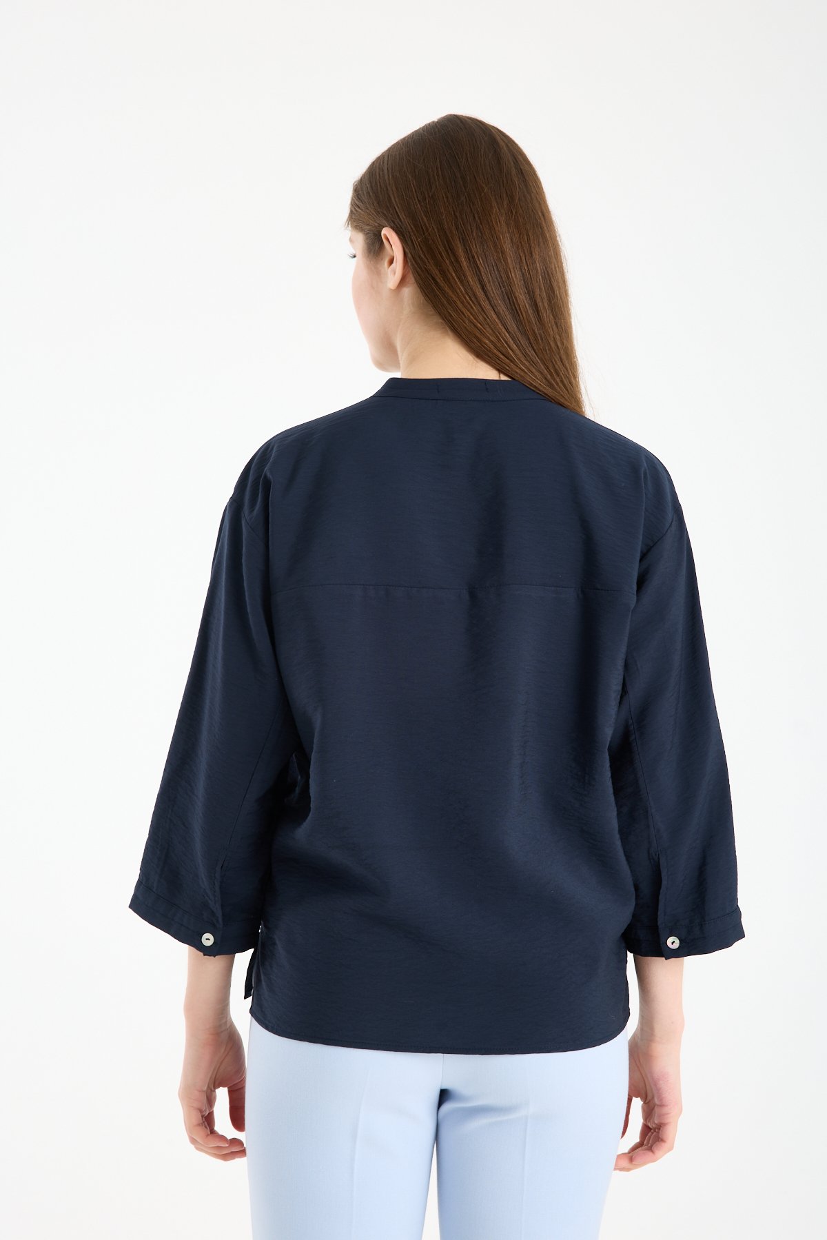 Kadın Hakim Yaka Sedef Düğmeli Yetim Kollu Gömlek LACİVERT - 44