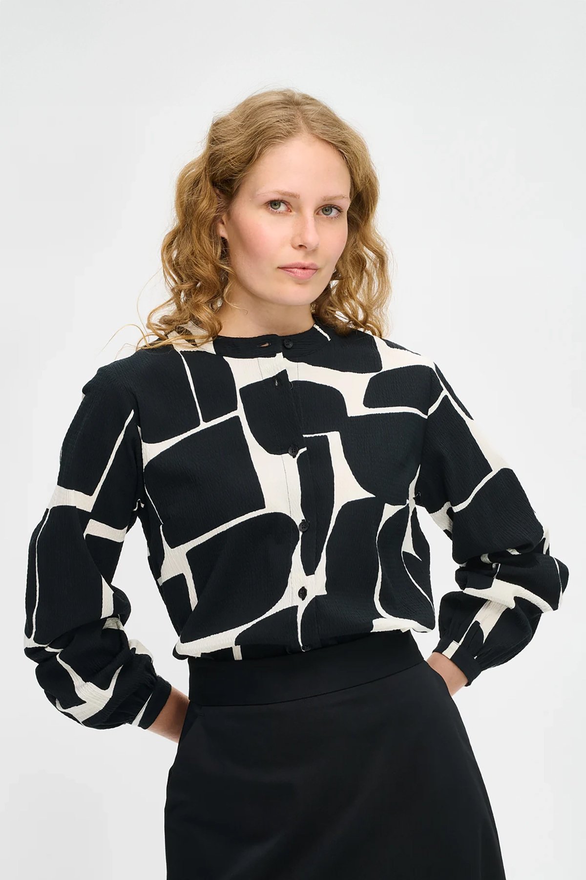 Kadın Hakim Yaka Uzun Kollu Geometrik Desenli Gömlek