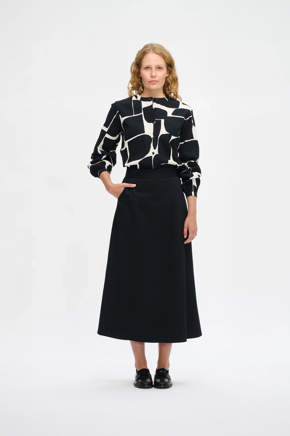 Hakim yaka tasarımı sade ve modern bir duruş sunarken, önden düğmeli formu klasik gömlek şıklığını tamamlar. Uzun kollu ve manşetli yapısı sayesinde hem günlük hem ofis stiline kolayca uyum sağlar.
