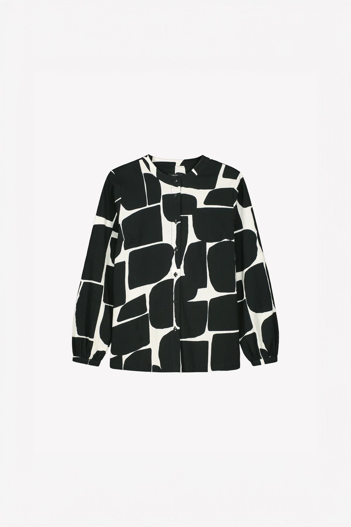 Modern ve güçlü desen tasarımıyla öne çıkan kadın gömlek, günlük stil ve ofis kombinleri için şık bir alternatiftir. Geometrik blok desen yapısı ürüne dinamik ve dikkat çekici bir karakter kazandırır.