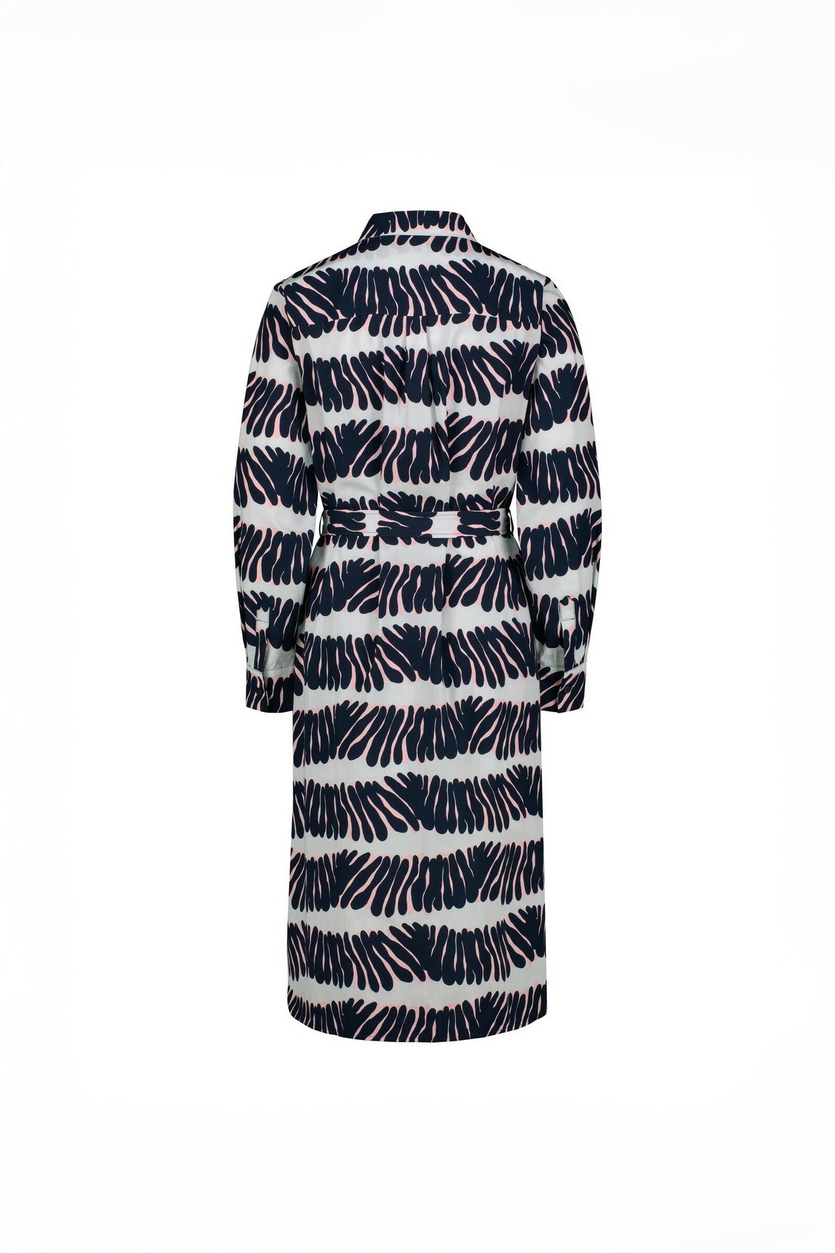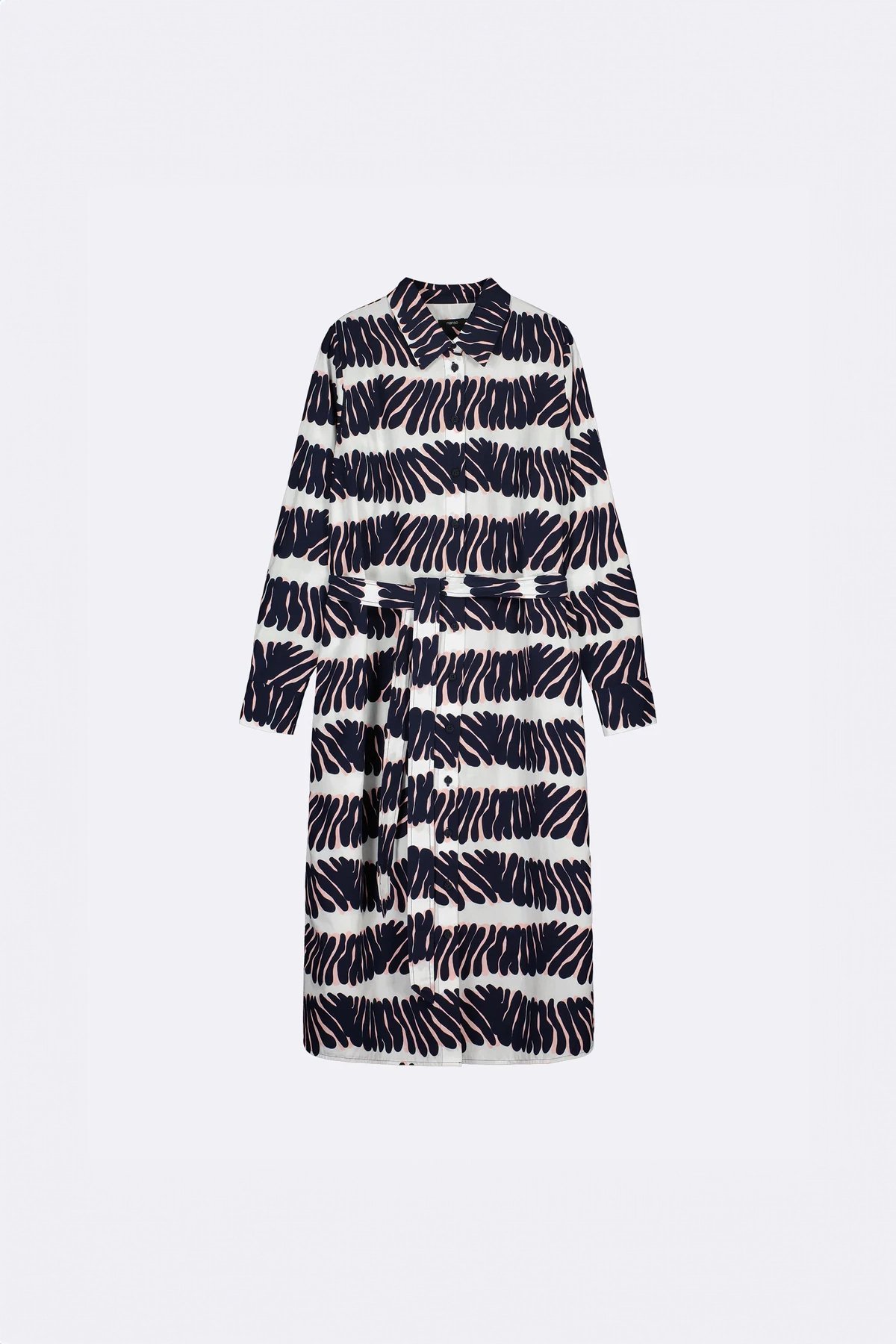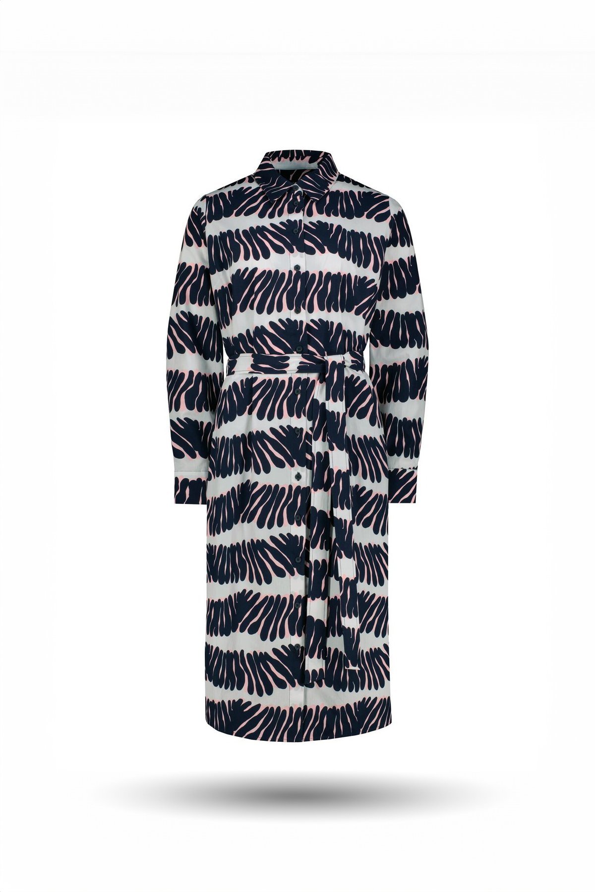 Kadın Lacivert Desenli Uzun Kollu Kuşaklı Gömlek Elbise