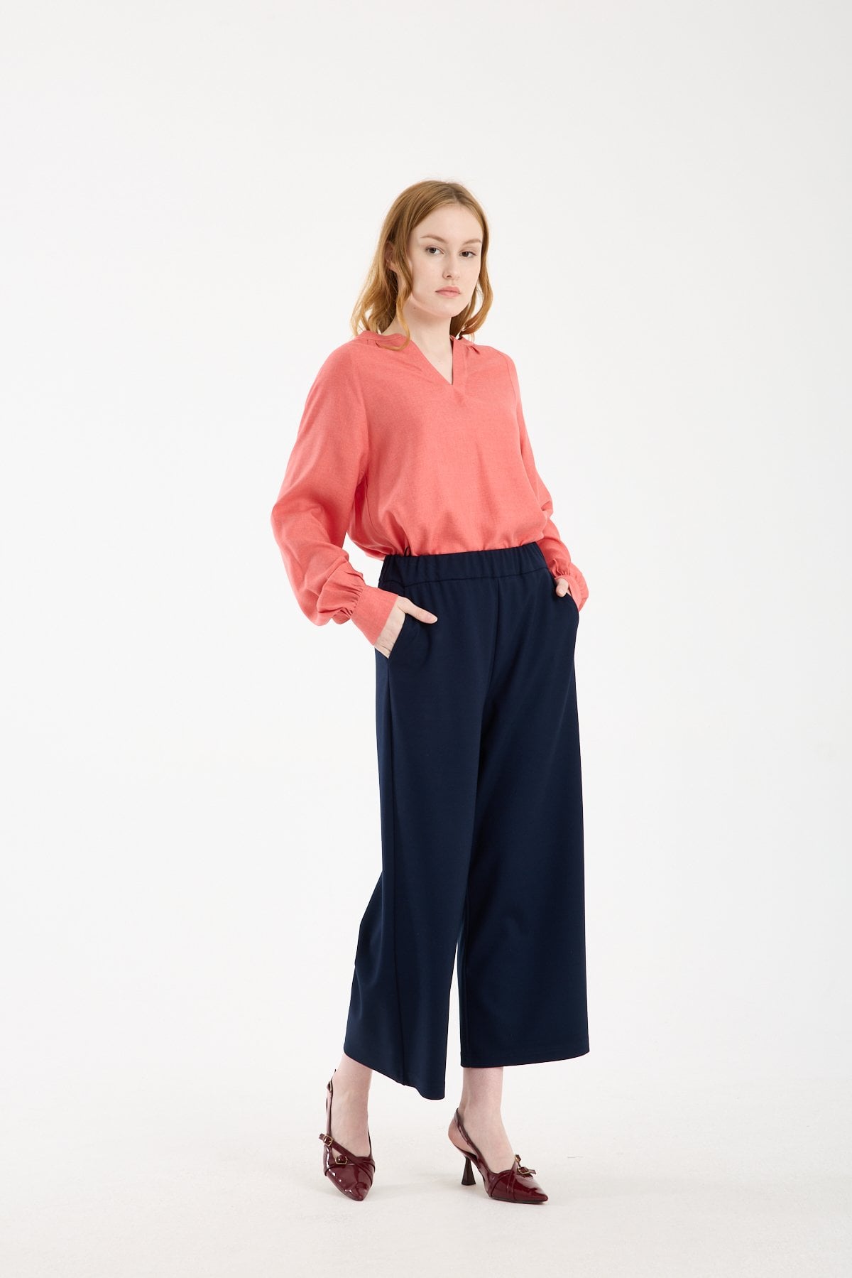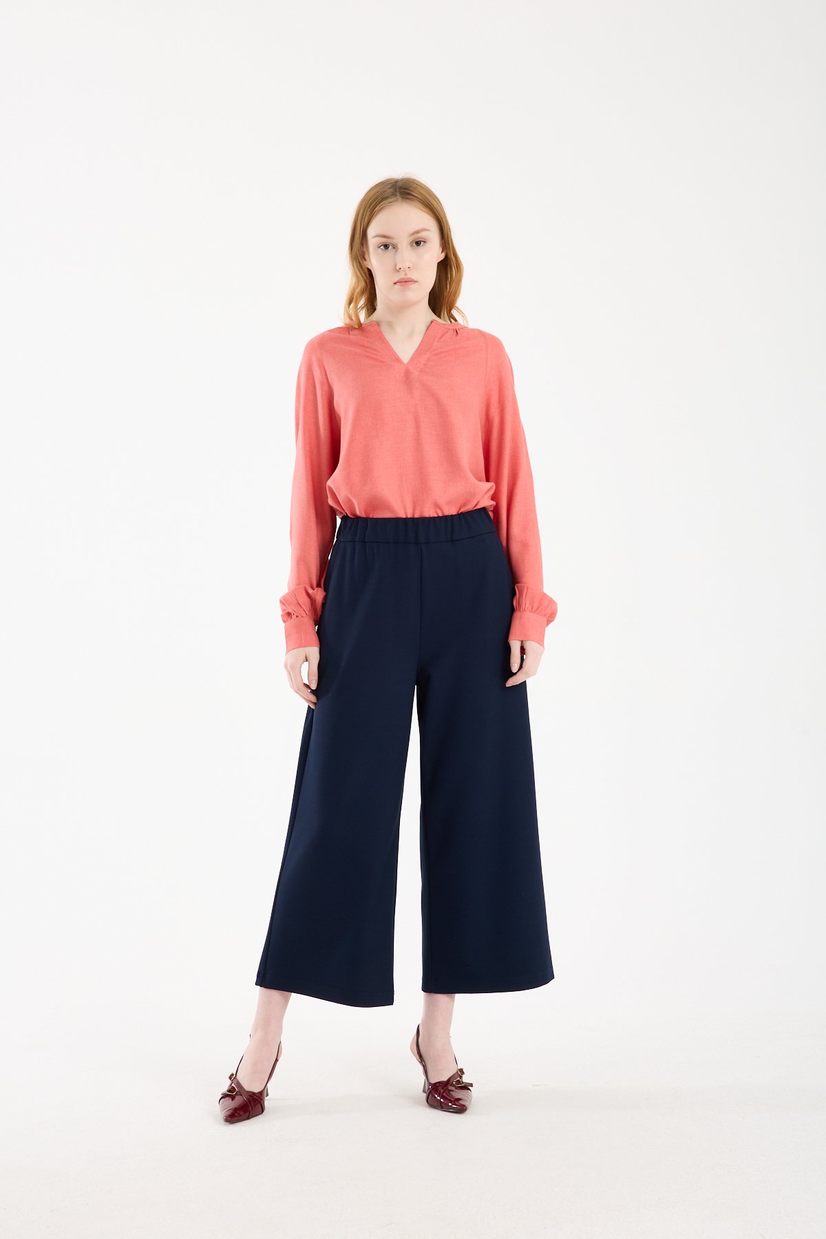 Rahat kesimi sayesinde pantolon ve eteklerle dengeli bir kombin oluşturur. Sade formu, farklı aksesuar ve alt parçalarla kolayca uyum sağlar.