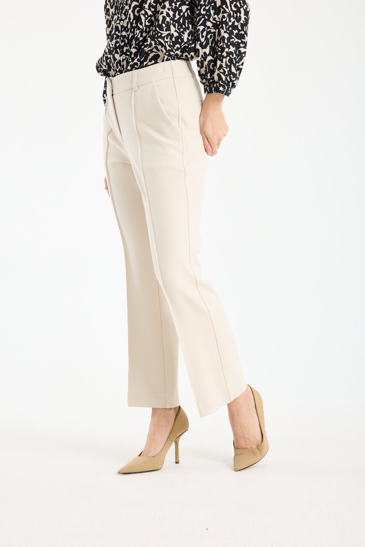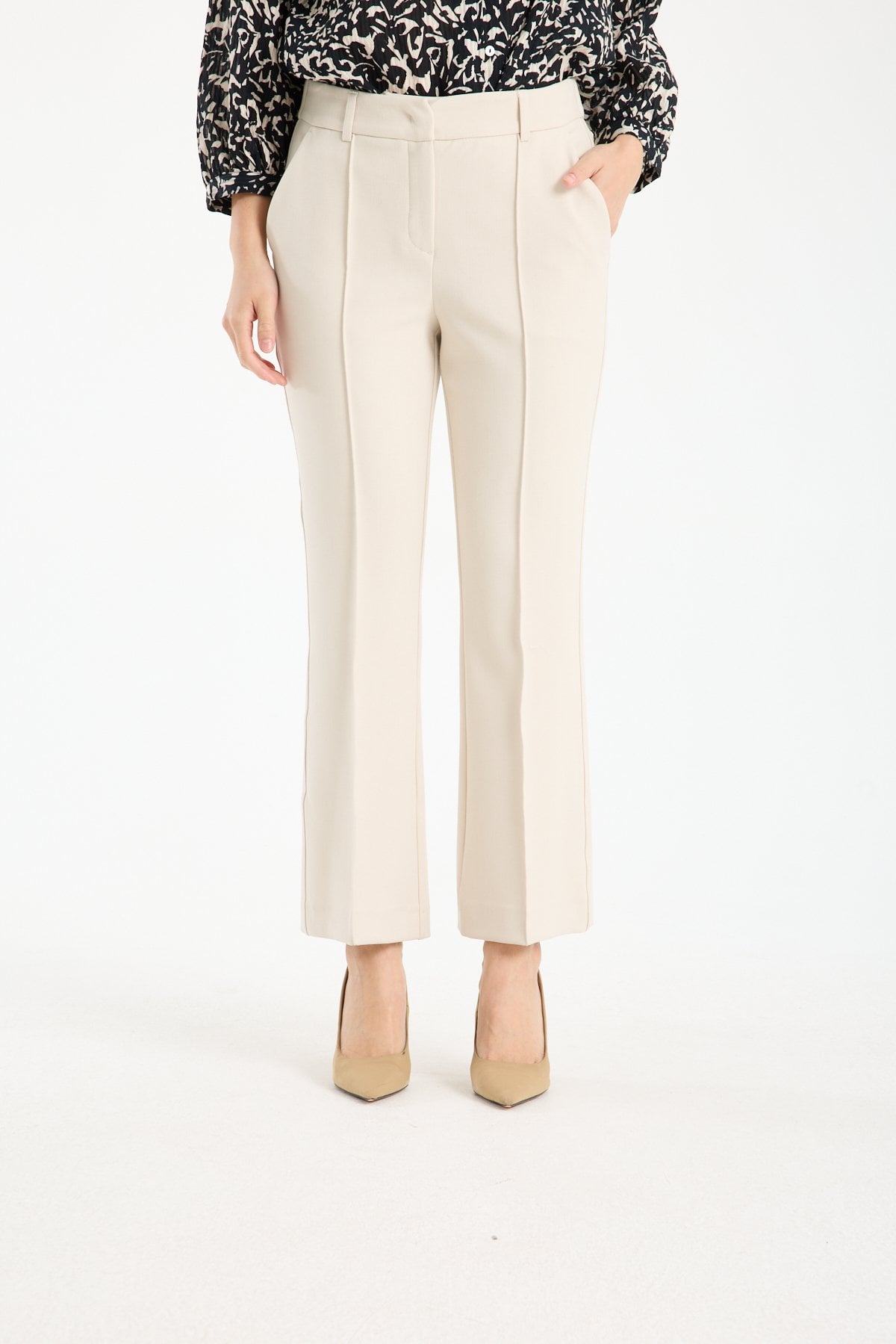 Kadın Mid Rise Hafif İspanyol Paça Premium Kumaş Pantolon BEJ - 44