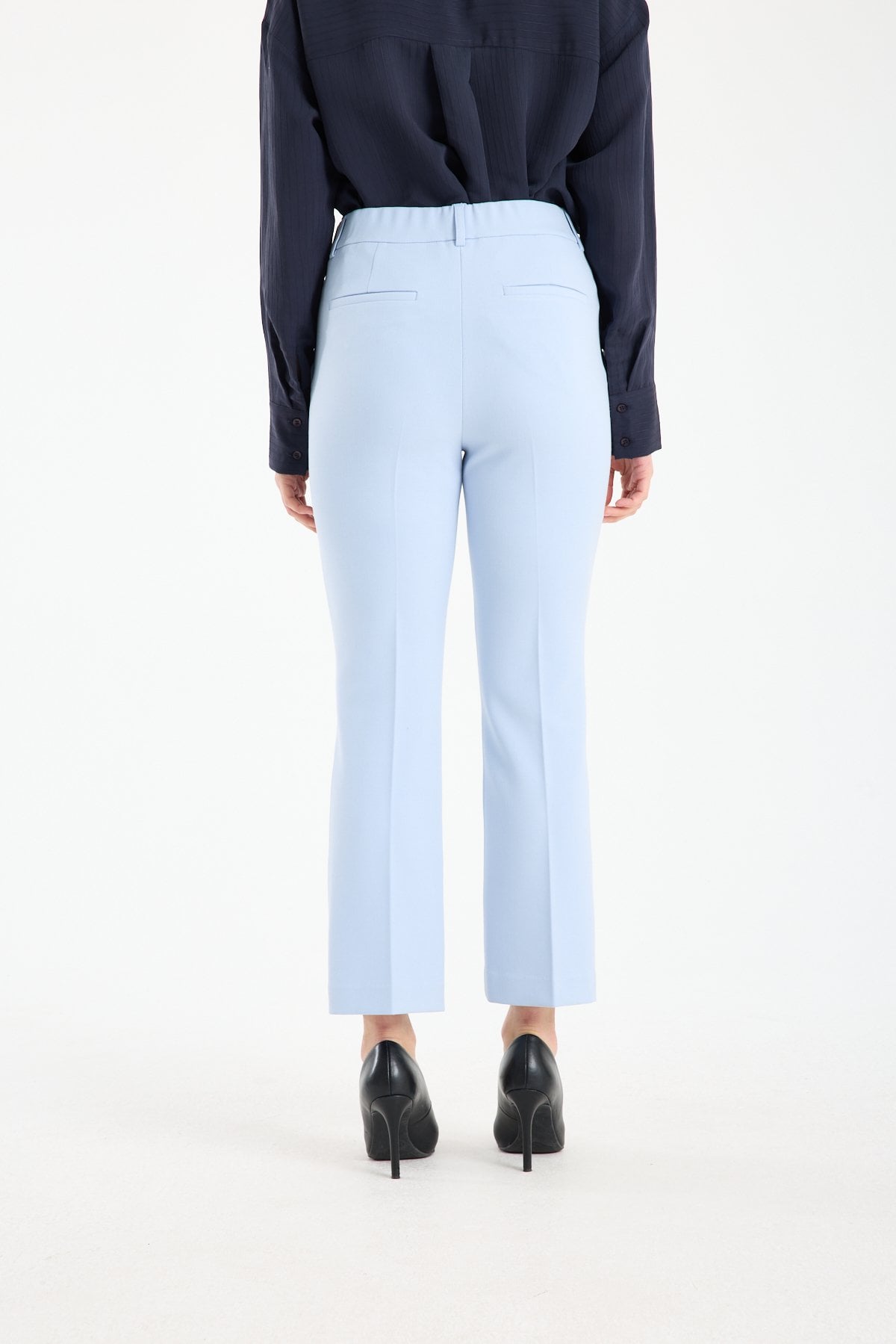 Kadın Mid Rise Hafif İspanyol Paça Premium Kumaş Pantolon MAVİ - 44