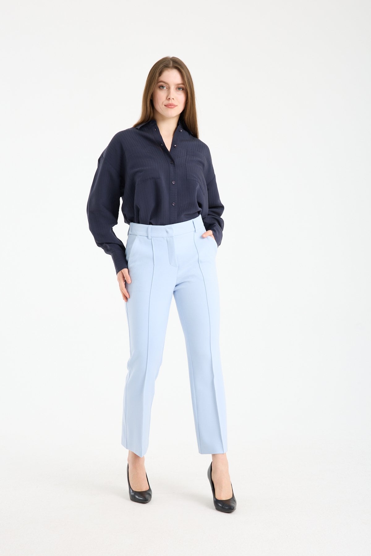 Yan cepleri fonksiyonel kullanım sunarken, kemer köprülü bel yapısı farklı kemerlerle kombin imkânı sağlar. Ofis stilinden günlük şıklığa kadar geniş bir kullanım alanına sahiptir.
