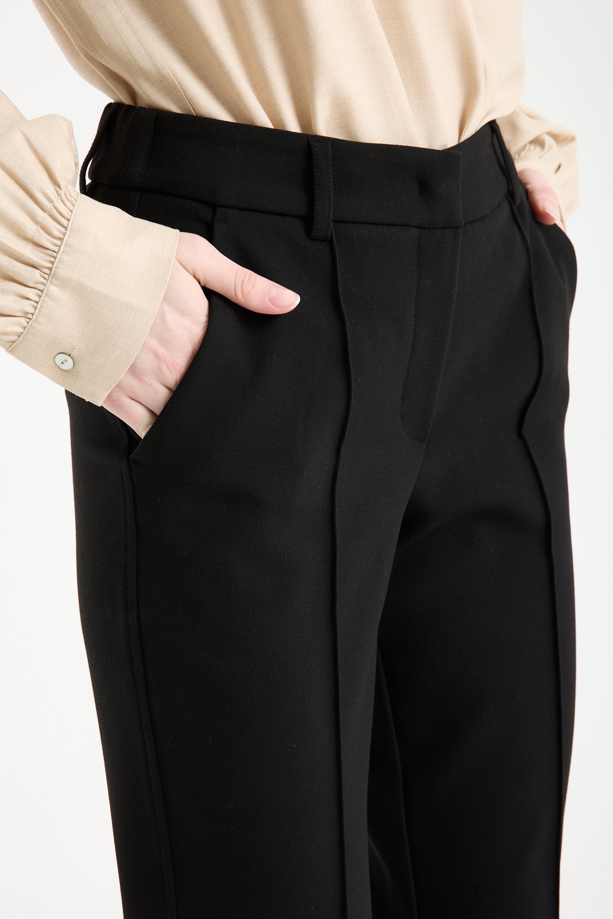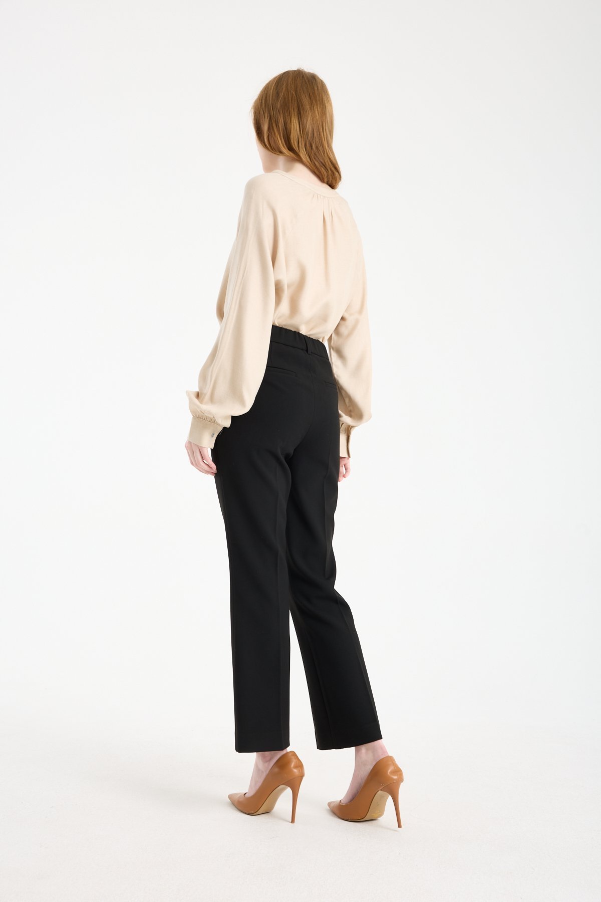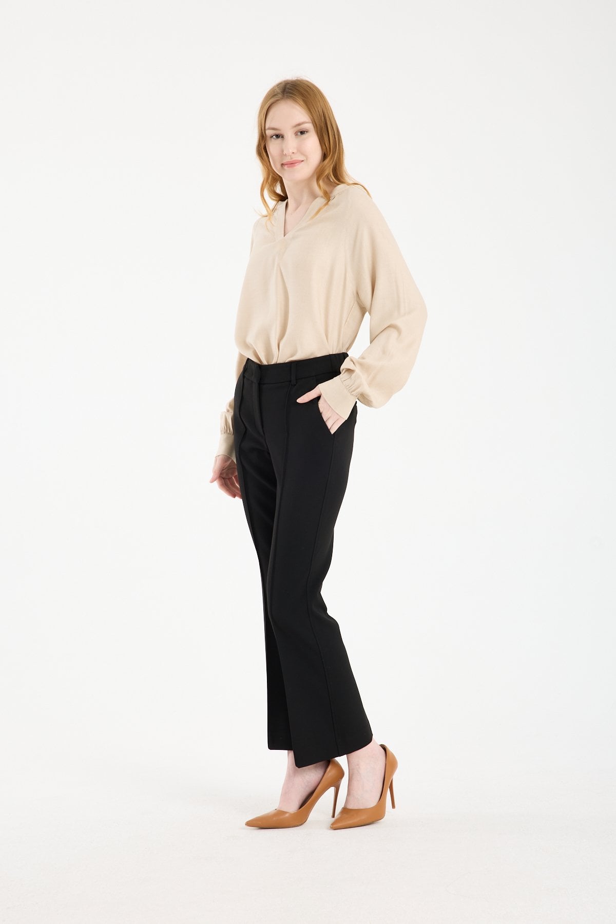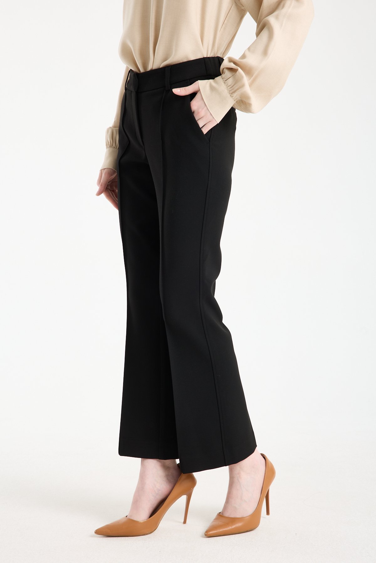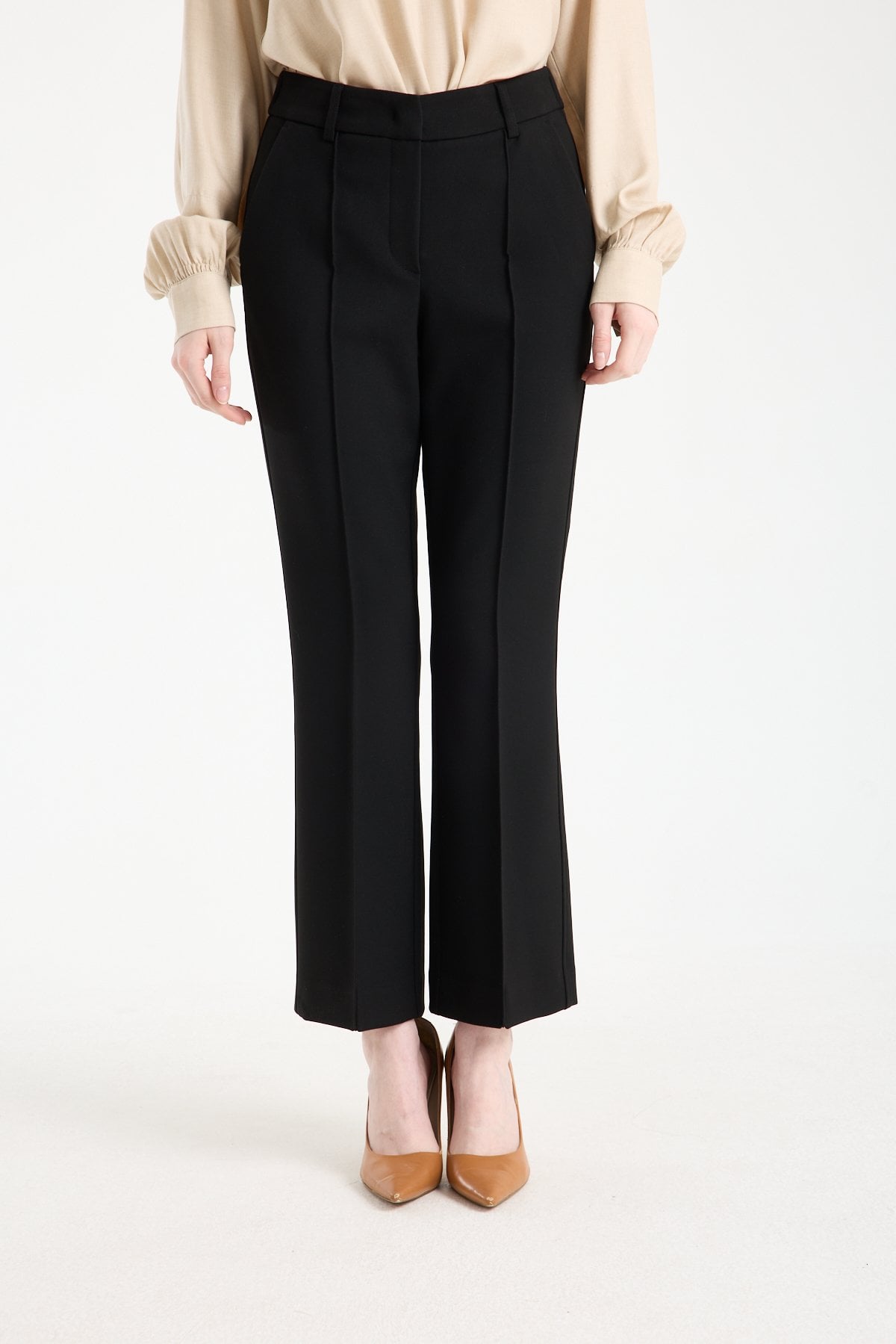 Kadın Mid Rise Hafif İspanyol Paça Premium Kumaş Pantolon SİYAH - 40