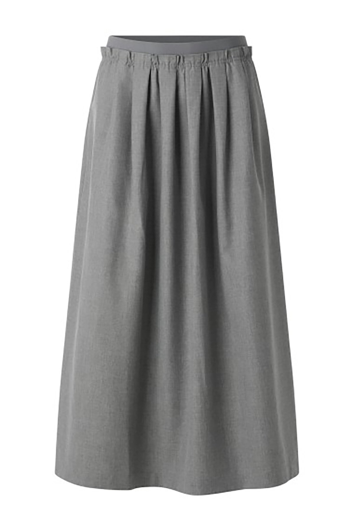 Kadın Yüksek Bel Pileli Lastikli Midi - Uzun Boy A Kesim Etek GRİ - 42