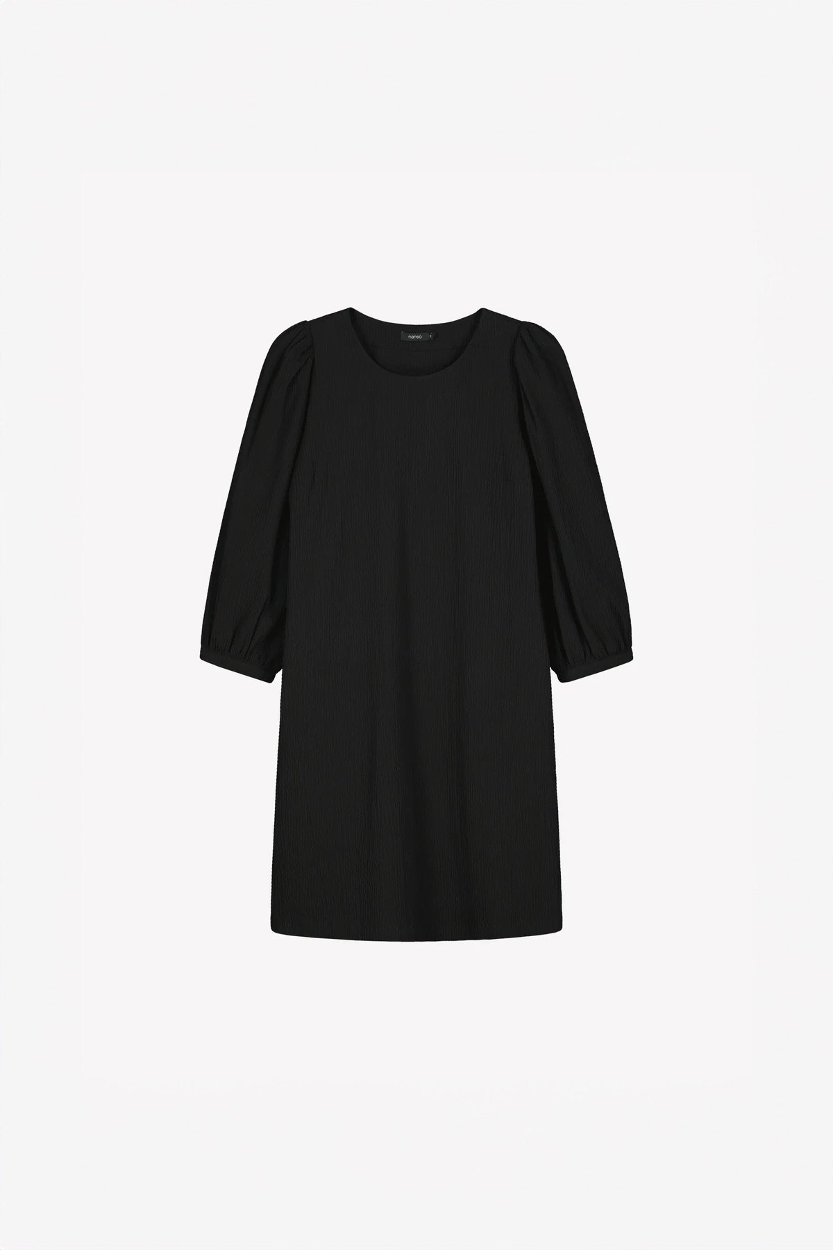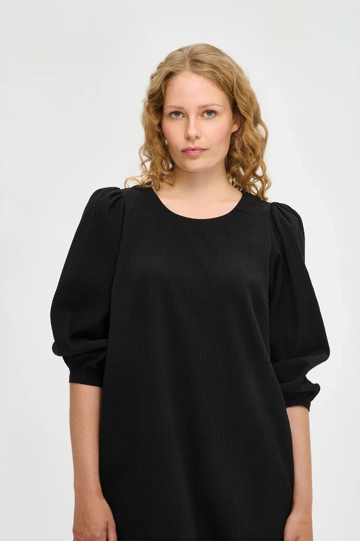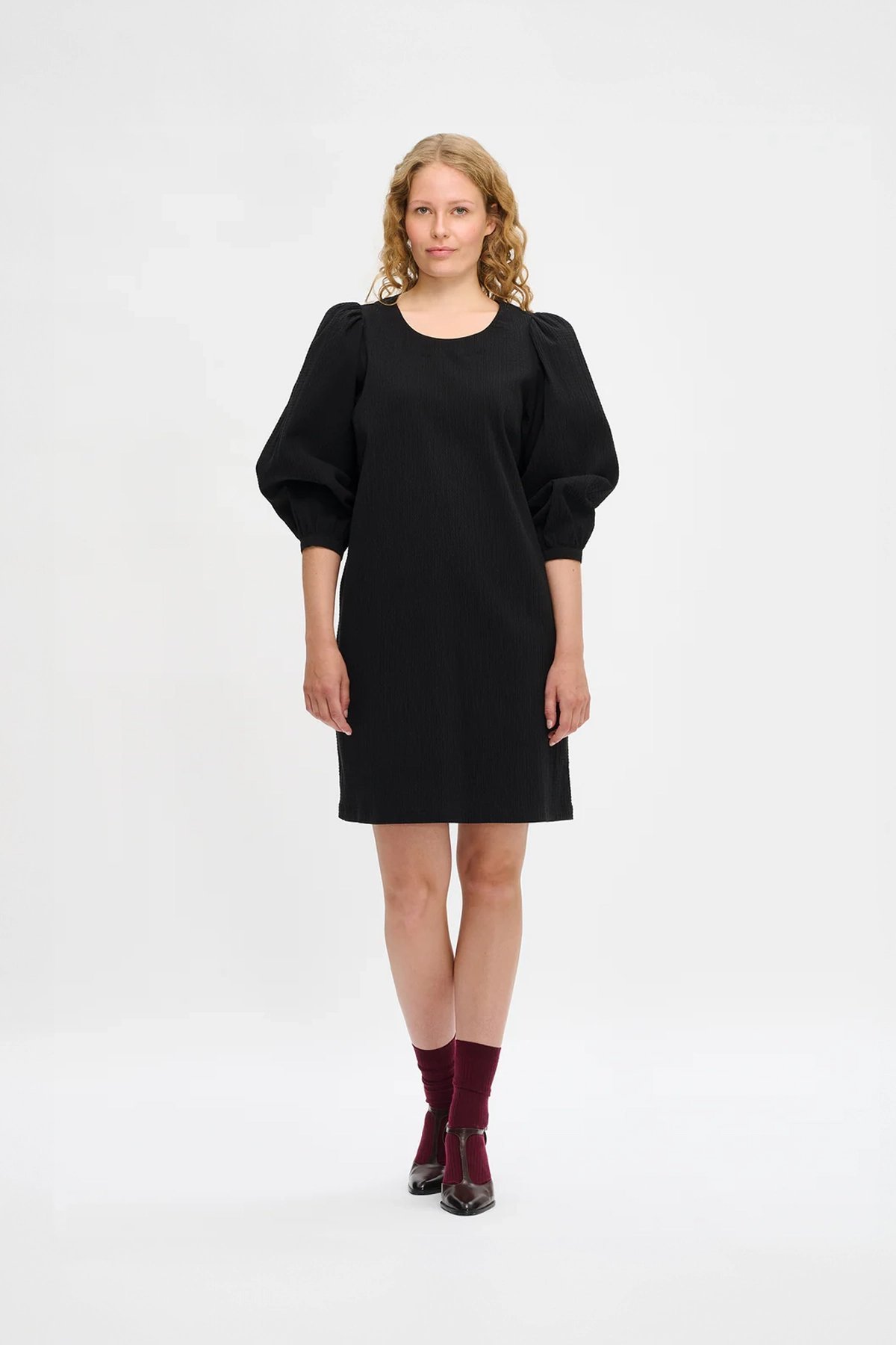 Yuvarlak Yaka Balon Kol Kadın Diz Üstü Elbise - Siyah Kısa Kollu Klasik Elbise